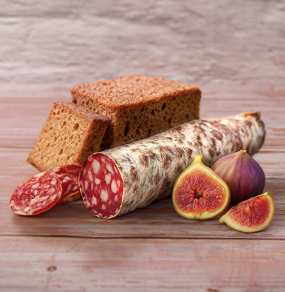 Diese handwerklich hergestellte Saucisson Sec wird mit aromatischem Pain d’Épices und zarten Feigenstückchen verfeinert. Das subtile Zusammenspiel aus warmen Gewürzen, milder Süße und reichen, gereiften Fleischaromen schafft ein elegantes, gastronomisches Genusserlebnis. Ideal als Teil einer Charcuterieplatte oder zu einem Glas kräftigem Rotwein.